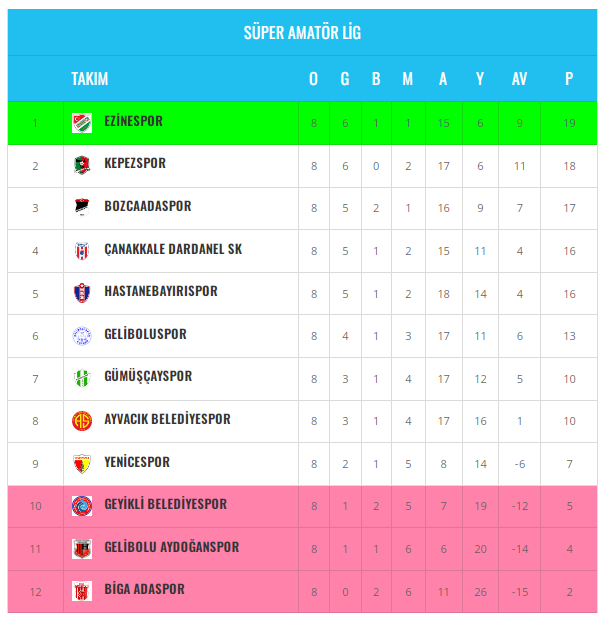 İki hafta önce yenilgisiz lider olarak ligi önde götüren Kepezspor ise geçen hafta Bozcaadaspor’a, bu hafta da Ezinespor’a yenilerek iki haftada 6 puan yitirdi. Liderliği Ezinespor’a kaptıran Kepezspor, ikinciliğe geriledi.