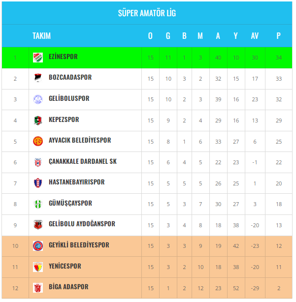 İkinci yarı bulduğu atakları gole çeviremeyen Bozcaadaspor aradığı golü karşılaşmanın son dakikalarında Berkay ile buldu ve maçı 2-1 kazandı. 15’inci hafta sonunda puanını 33’e taşıyarak lider Ezinespor’un 1 puan ardından ikinci sıradaki yerini korudu.